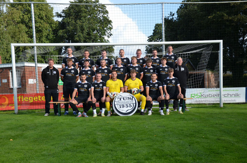 Mittlere Reihe von links: Trainer Johannes Stein, Wilko Janssen, Patrick Hugen, Lukas Kleen, Steffen Lüpke, Julian Garrelts, Aaron Hinrichs, Luca Feeken, Betreuer Matthias Janssen.